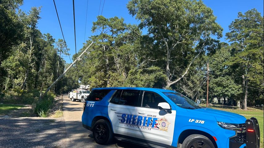 Officials said a broken pole led to power lines over the roadway. DEMCO is on scene but it "could be a while" until the road is back open, deputies posted on Facebook.
