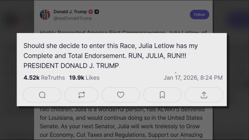 The discussion was sparked when President Donald Trump posted on his own social media platform, Truth Social, saying, "Should she decide to enter this Race, Julia Letlow has my Complete and Total Endorsement," but Letlow hasn't publicly decided to enter the race.