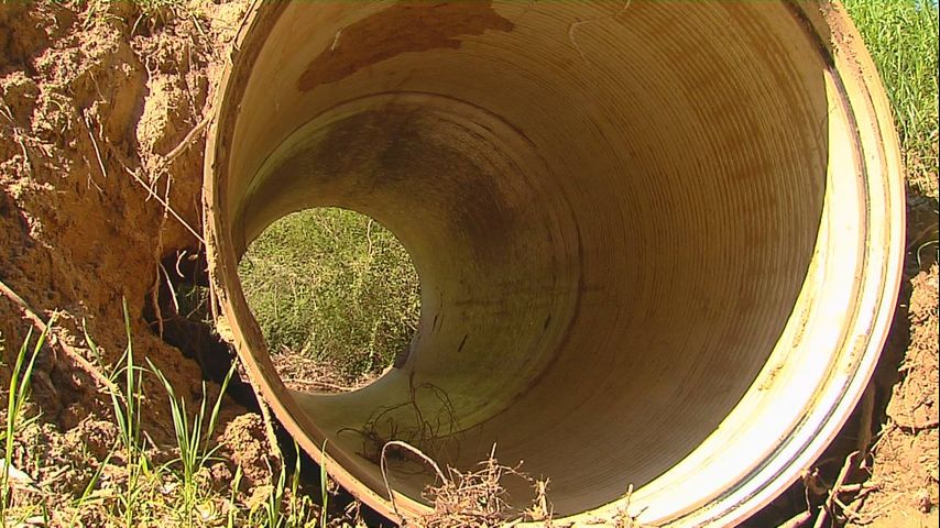 To help solve the issue, with the help of a professional, Kadair installed culverts to bridge the gaps between his land and help the water drain. The force of the water has been so powerful, those culverts have become dislodged. In one case, the water has washed away the dirt around the culvert, creating a sinkhole.