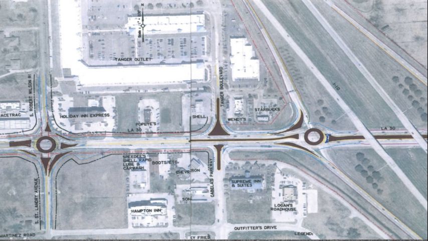 The roundabout at La. 30 at South St. Landry Drive took a considerable amount of time to build because utilities had to be re-routed. The work at I-10 should go quicker because there will be less excavation. Those roundabouts should open next summer.